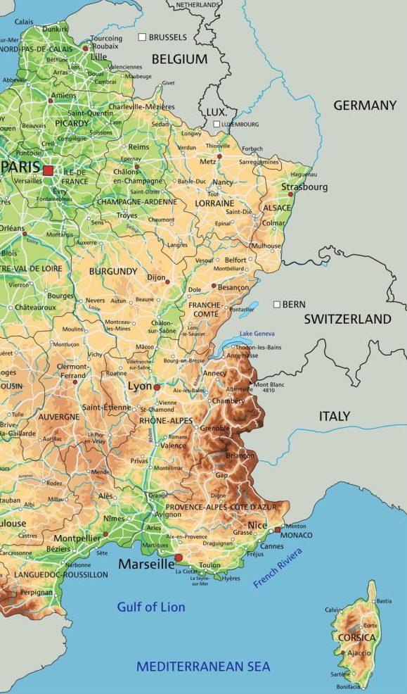 Carte de l'est de la France